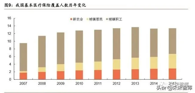 基本医保覆盖深度不断提升。过去由于制度缺陷,城镇居民医保的实际报销比例仅 为 52.3%,新农合的实际报销比例仅为 49.2%。自从我国在 2009 年开始实施医改 以来,医保改革向深向广,国家不断出台政策提高医保保障深度,有效刺激居民医 疗需要向需求的转化。