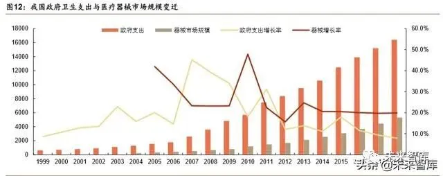 SARS 带来的增量财政投入带来了大量采购机会。以 2003 年 SARS 为例,2003 年的非典使得有关部门对公共卫生体系建设的重视程度进一步提高,政府医疗卫生 投入和政府医疗保障支持大幅增加。2003~2006 年国家政府卫生支出增幅同比分别 是 22.9%、15.8%、20%、14.6%。随后的几年间,我国医疗器械行业市场规模复 合增速长期保持在 20%以上