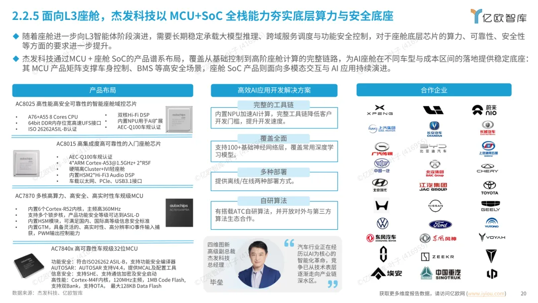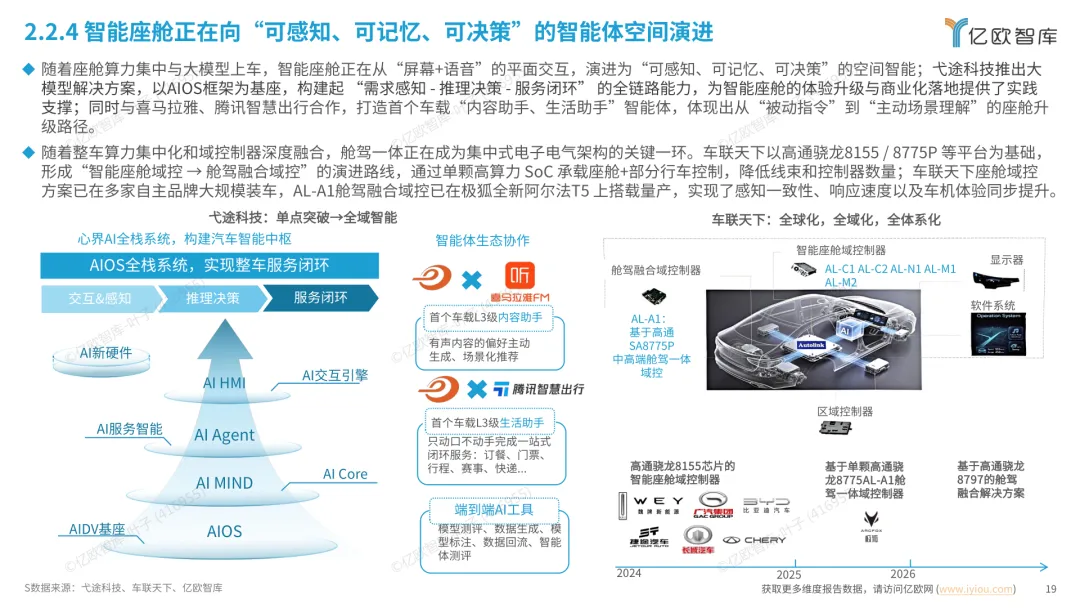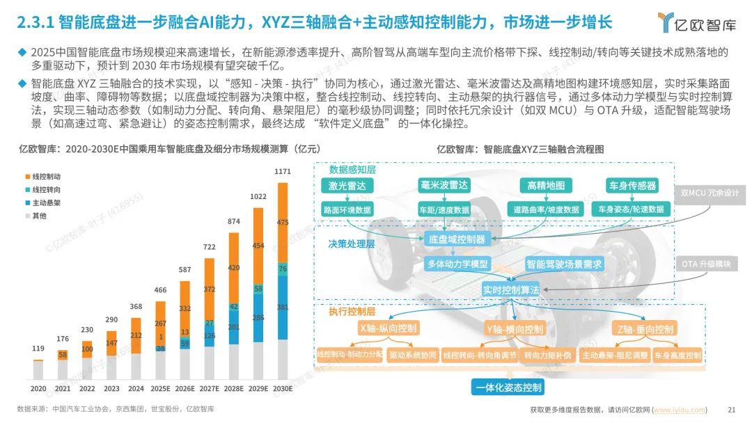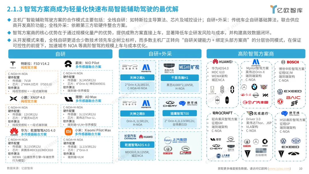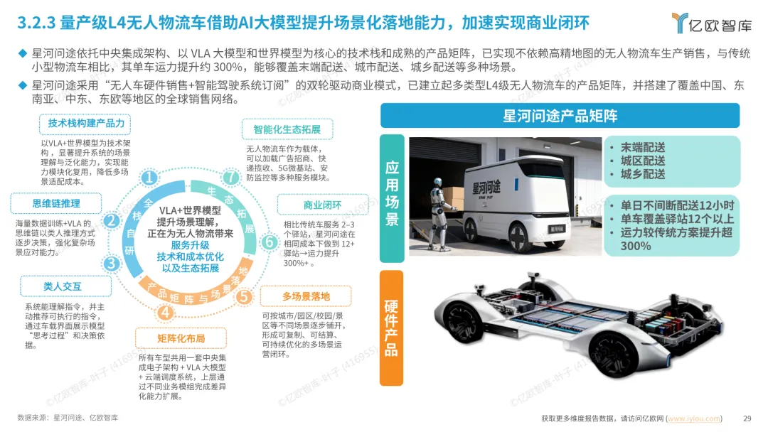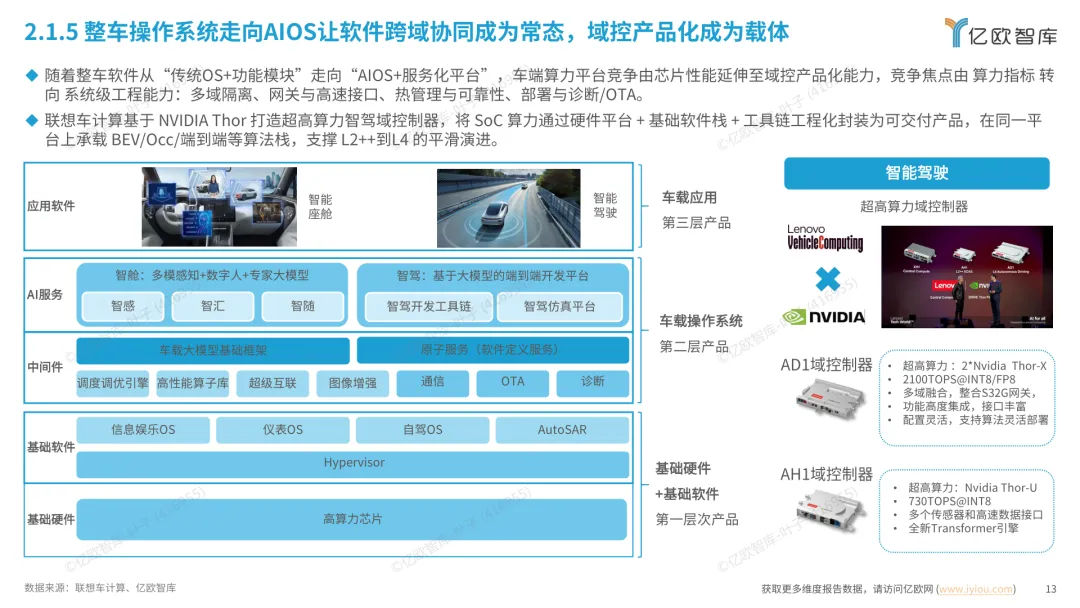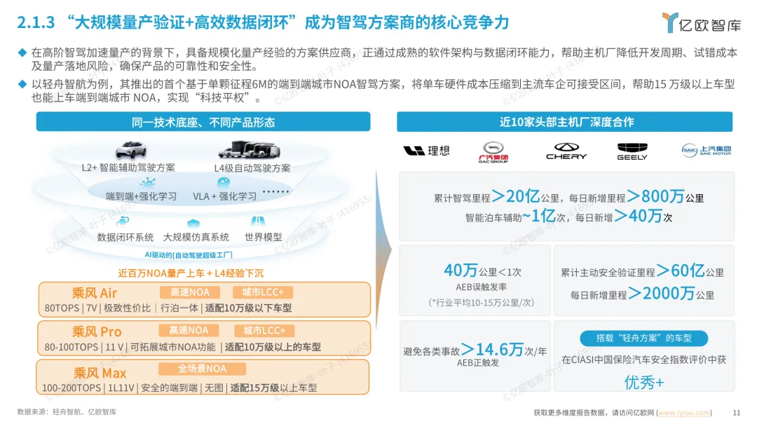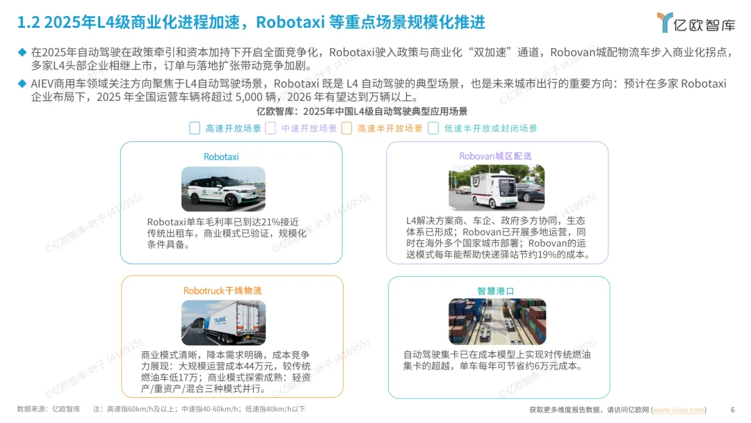 导读:报告梳理 2025 年中国人工智能电动汽车(AIEV)产业发展态势,涵盖技术演进、应用场景与市场前景,为行业发展提供参考。2025 年中国 AIEV 市场规模达 436.3 万辆,同比增长 18.7%,预计 2030 年渗透率将升至 50%。技术层面,VLA 架构与 AI Agent 成为核心驱动力,L3 级自动驾驶加速落地,特斯拉、蔚来、华为等企业推出多款搭载高阶智驾系统的车型,芯片算力普遍突破 200TOPS,全场景 NOA 功能覆盖持续扩大。应用场景不断丰富,Robotaxi、Robovan、Robotruck 等商业化探索提速,L4 级自动驾驶在城区配送、干线物流等场景实现规模化试点。固态电池技术取得突破,能量密度超 400Wh/kg,续航能力迈向 1000 公里级。产业生态持续完善,芯片、传感器、操作系统等核心零部件供应商与车企深度协同,推动 AIEV 产业向智能化、规模化方向稳步进阶。