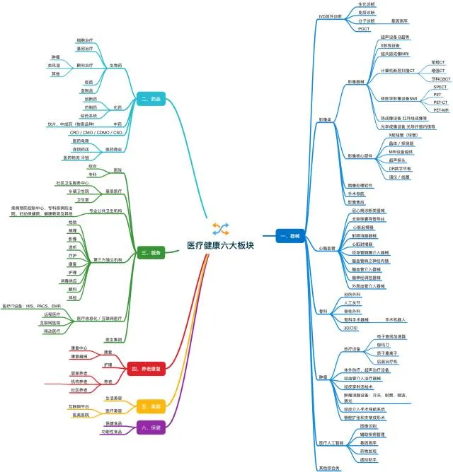 (如果看不清,请回复本公众号“健康产业与宠物消费”【医疗健康六大板块】即可以获取原图。)