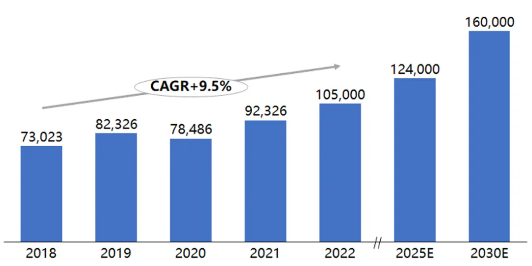 (二)医疗健康行业市场规模达10.5万亿元,过去五年以9.5%的年复合增长率快速增长