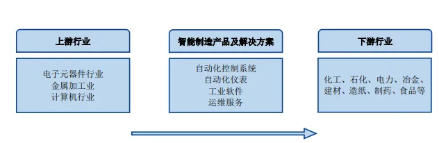 工业自动化行业上游主要是各类金属材料和电子器件的供应商。除了部分高端的芯片、仪表等零部件需要进口以外,其余原材料均可从国内厂商获得,货源充足且价格稳定。由于工控系统的实施多为项目制,下游的工业应用企业对自动化行业的发展有明显影响。