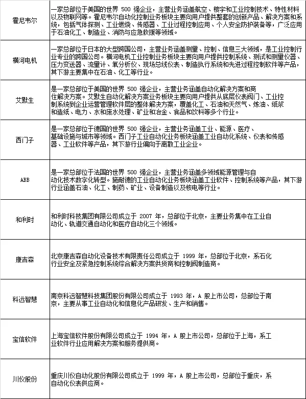 就细分产品而言,流程工业自动化控制系统领域行业集中度较高,巿场份额主要被中控技术、和利时、霍尼韦尔、横河电机、艾默生等企业所占据。自动化仪表领域行业集中度较低,从业企业较多,呈现高度竞争格局,除少数实力雄厚的大型跨国集团外,大部分企业的市场份额都处在较低水平。