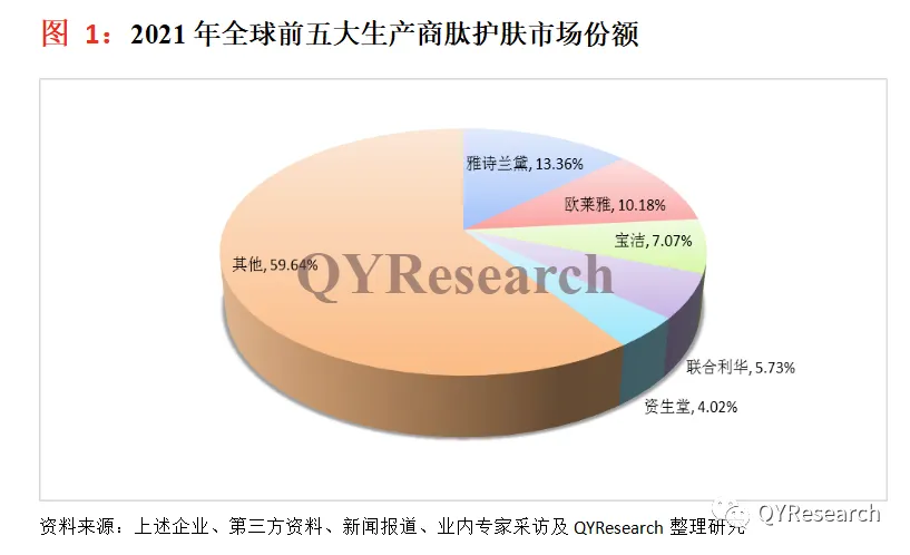 2021年全球肽护肤市场规模达到了1,826.55百万美元,预计2028年将达到4,172.46百万美元,年复合增长率(CAGR)为12.30%。地区层面来看,预计未来六年中国市场复合增长率为16.82%,并在2028年规模达到901.93百万美元。未来几年,亚太地区的重要市场地位将更加凸显,除中国外,日本、韩国、印度和东南亚地区,也将扮演重要角色。此外,未来六年,预计德国将继续维持其在欧洲的领先地位,2022-2028年CAGR将大约为10.77%。生产层面,目前欧洲是全球最大的肽护肤生产地区,占有大约34.86%的市场份额,之后是北美,占有大约34.40%的市场份额。目前全球市场,基本由欧洲和北美地区厂商主导,全球肽护肤头部厂商主要包括欧莱雅、雅诗兰黛、联合利华和宝洁等,前四大厂商占有全球大约36.34%的市场份额。从产品类型及技术方面来看,精华在全球肽护肤产品市场中占据主要地位,2021年市场规模为687.71百万美元,占据全球37.64%份额,预计到2028年市场规模扩至1,562.31百万美元,预测期内CAGR将大约为12.10%,其次为保湿霜和面霜产品。从产品市场销售渠道情况来看,在线销售为球肽护肤产品的首要销售渠道,2021年市场体量为19,679百万美元,占据全球51.68%份额,预计到2028年市场规模扩至50,385百万美元,预测期内CAGR将大约为13.52%目前全球主要厂商包括雅诗兰黛、欧莱雅、宝洁、联合利华等,2021年前三名厂商份额占比超过30%,预计未来几年行业竞争将更加激烈,尤其在中国市场。
