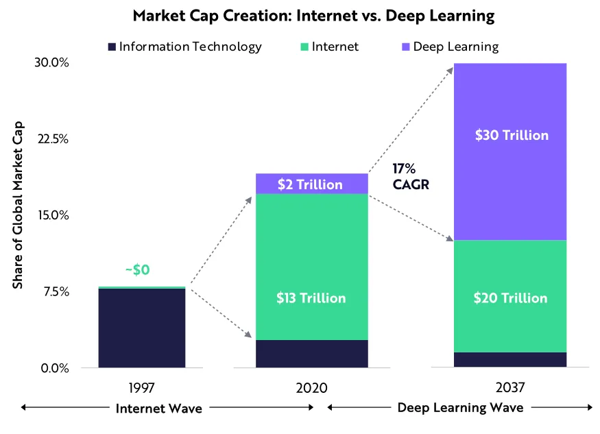 ARK认为,在未来15~20年,深度学习将为股票市场增加30万亿美元的市值。
