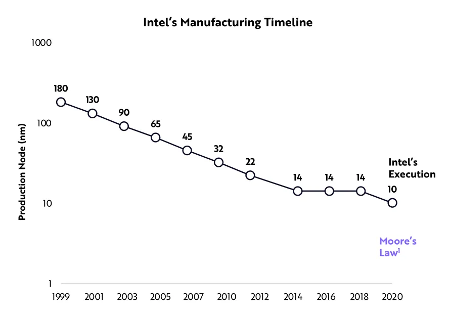 英特尔将10纳米处理器项目推迟了四年,这使得其竞争对手台积电和AMD得以在2020年成为市场双雄。