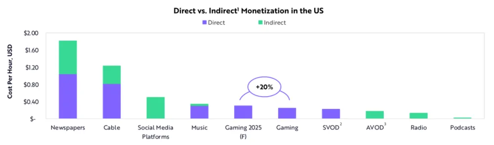 由于游戏内购买激增,游戏产业的创收端口正在从开发者转向游戏玩家。事实上,随着进入门槛降低,许多玩家成了开发者。我们认为,这种转变提高了视频游戏的变现率。未来五年,玩视频游戏的每小时成本可能会增加20%,但相对于其他娱乐和信息渠道而言仍将有利可图。