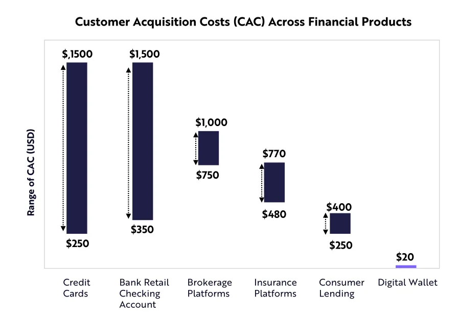 数字钱包爆炸性增长的主要推动力是较低的获客成本。