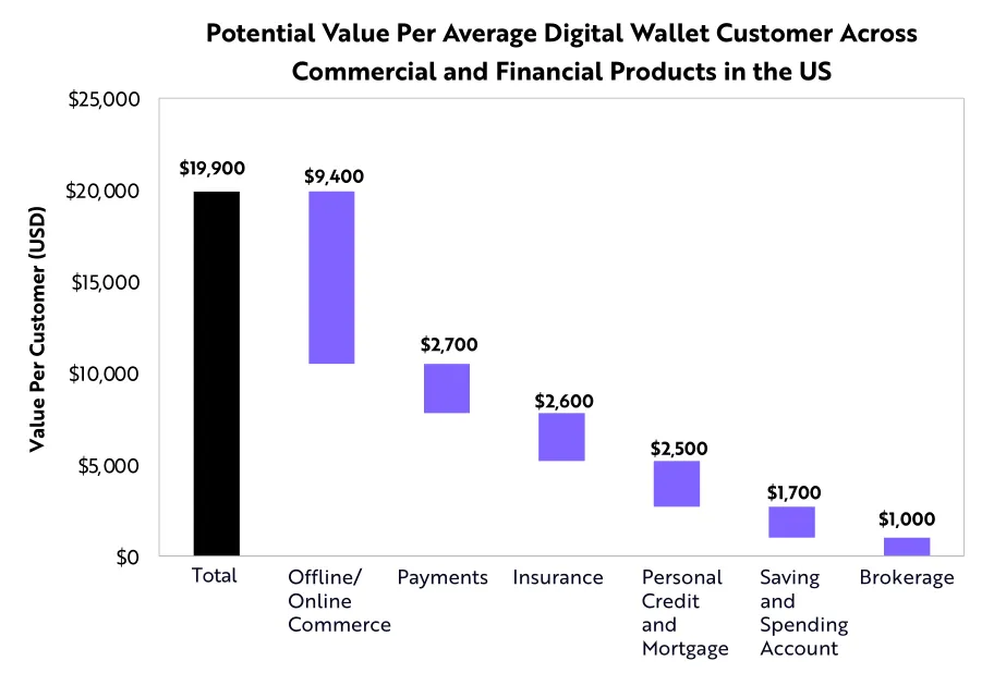 如今,数字钱包开始全面渗透到包括券商和借贷在内的传统金融服务体系中。数字钱包可以用作商业活动的领先集成式金融服务平台,而不仅仅是提供金融产品。