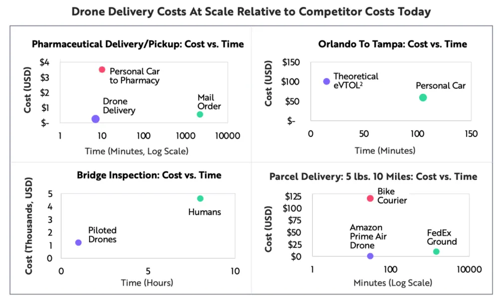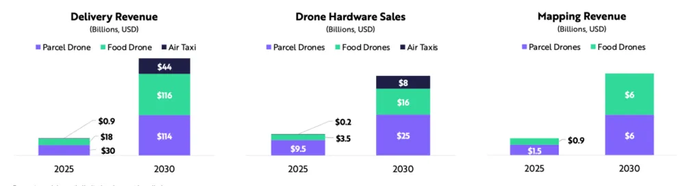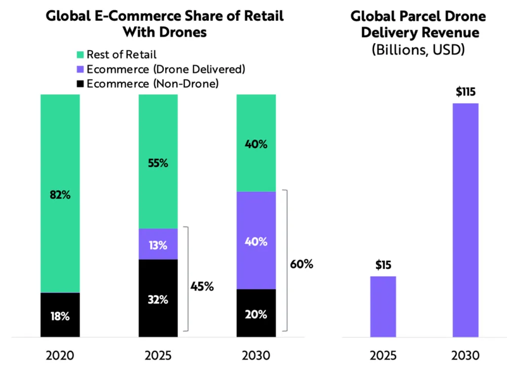 ARK估计,到2025年,无人机硬件市场将达到1000亿美元左右。