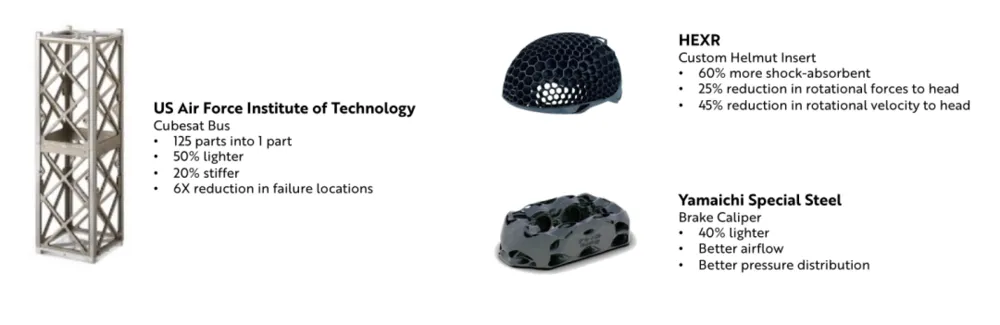 美国空军技术学院— 立方卫星信息通路 •125个零件整合为1个 •重量减轻50% •硬度提高20% •故障定位减少6倍
