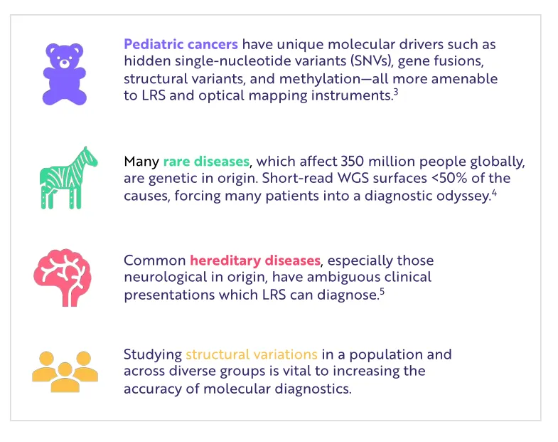 某些临床应用,如儿科重症监护环境下的快速全基因组测序(WGS),报销率很高,使得诊断提供商能够更灵活性地改用长读测序。