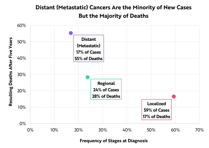 转移性癌症仅占新发病例的17%,但在5年的时间里却造成了55%的癌症死亡。