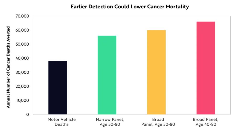 即使癌症治疗方法未能有所突破,ARK估计,仅在美国,早期干预每年就可以预防66000例癌症死亡病例。