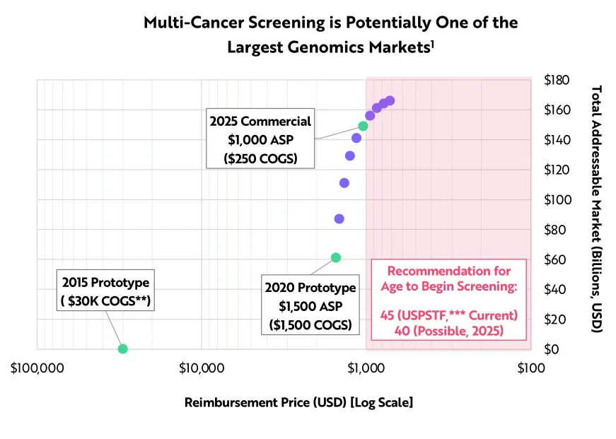 如果多癌症筛查完全得到应用,那么仅在美国,多癌症筛查市场规模就将扩大到1500亿美元。
