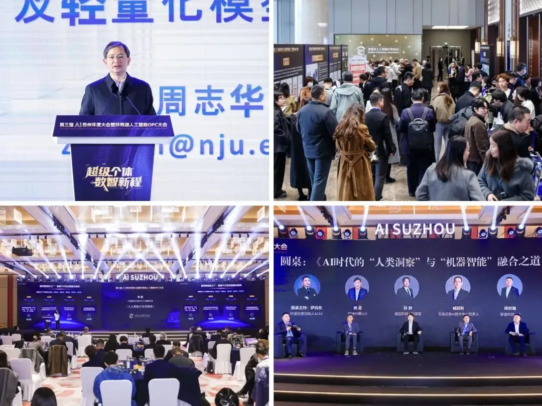 12月19日,第三届AI苏州年度大会暨环秀湖人工智能OPC大会成功举办,大会以“超级个体 数智新程”为主题,汇聚了人工智能领域的顶尖学者、行业专家、领军企业、科研院所、投融资机构及行业协会等近千名嘉宾,共同见证苏州人工智能产业的年度成果与OPC生态建设的战略启航。
