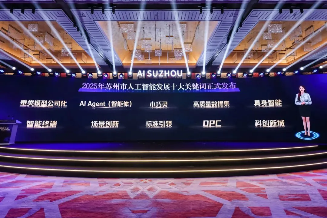 本次发布的十大关键词分别为:垂类模型公司化、AI Agent(智能体)、小巧灵、高质量数据集、具身智能、智能终端、场景创新、标准引领、OPC、科创新城。这些关键词涵盖产业培育、技术应用、生态支撑等多个维度,系统呈现了苏州AI产业蓬勃发展的全貌。