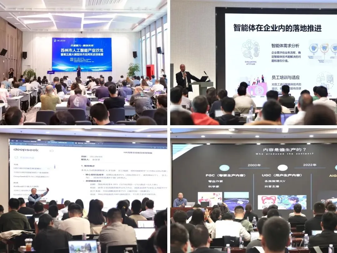 协会聚焦企业转型需求,全年举办六期大模型实战训练营,累计超1000人参与,邀请专家围绕AI智能体开发、多模态生成、AI编程等课程,开展场景化实战教学,有效提升企业AI应用能力。举办苏州市职工人工智能应用技能竞赛,通过“以赛促学、以赛促练”的形式,赋能产业创新与能级跃升。共同发起成立全市行业协会培训大联盟,构建了技术交流、人才培养、市场拓展的多维服务体系。