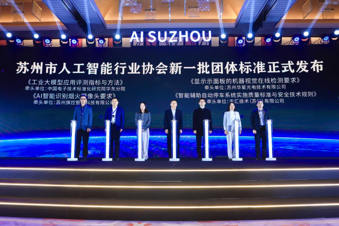 协会持续推进人工智能系列团体标准研制工作,已累计发布了包括“人工智能企业分类评价、工业大模型应用评测指标与方法、显示面板的机器视觉在线检测要求”等16项团体标准,推动苏州在构建人工智能标准体系、引领产业高质量发展方面的系统性布局。