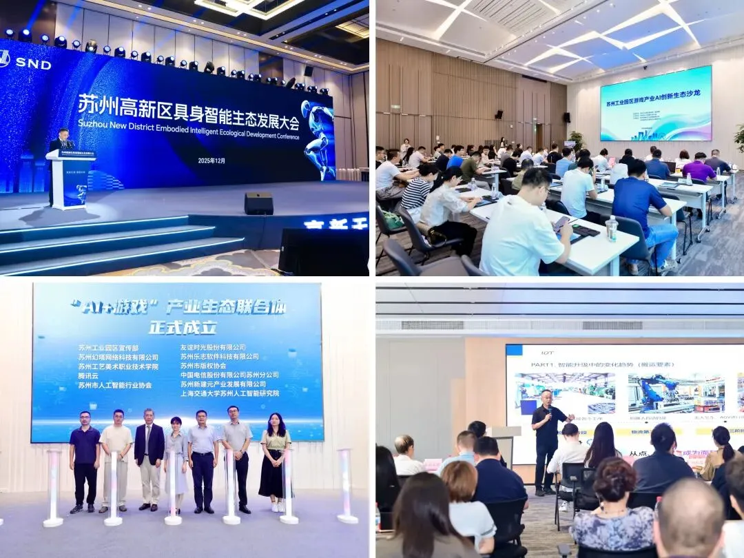 协会积极联动全市各板块,紧扣区域特色与需求,先后与苏州高新区、吴江区、常熟市、苏州工业园区、相城区、太仓市策划举办“人工智能赋能新型工业化推进会”、“具身智能生态发展大会”、“游戏产业AI创新生态沙龙”等系列活动。有效促进区域产业生态培育,形成市区联动、特色鲜明、协同并进的发展格局,全面增强全市人工智能发展的整体合力。