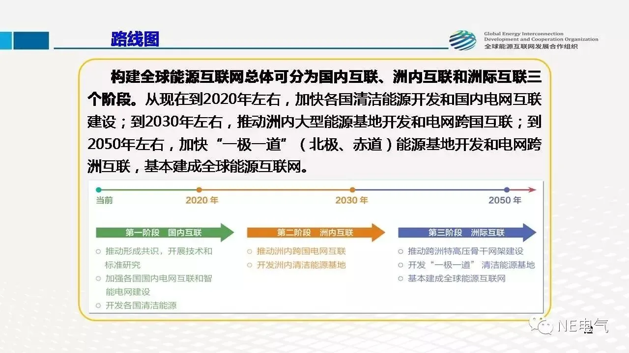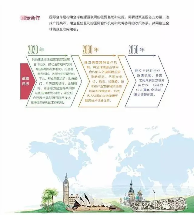 《白皮书》指出,全球能源互联网的发展将分国内互联、洲内互联和洲际互联三个阶段。到2030年至2050年,各国各洲电网或将实现互联互通,全球能源互联网成形。