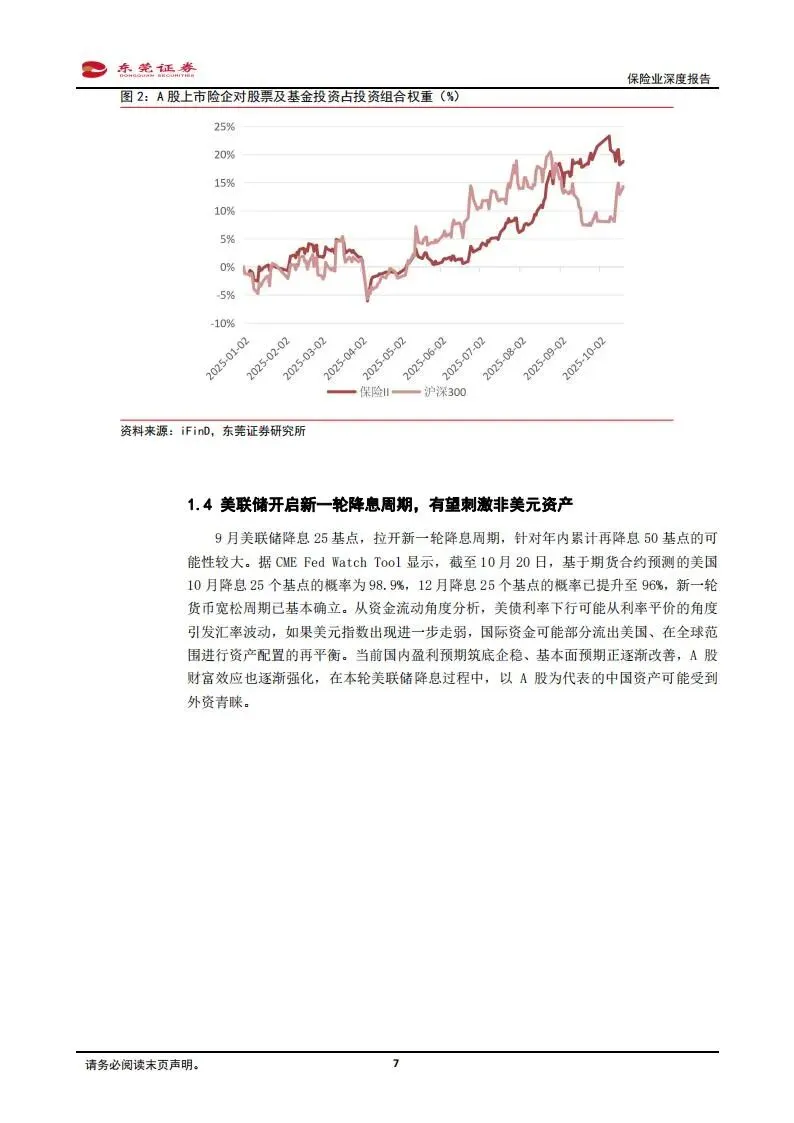 截至2025年上半年,保险公司资金运用余额达36.23万亿元,股票和权益类基金投资金额超4.4万亿元,占比12%。五家A股上市险企股票及基金投资权重平均为13.75%,中国平安、新华保险提升较快。新规将优质险企权益类资产配置上限提升至30%或40%,未来配置空间继续扩大。行业投资分布以银行、公用事业、交运为主,险资青睐高股息、低波动优质资产。