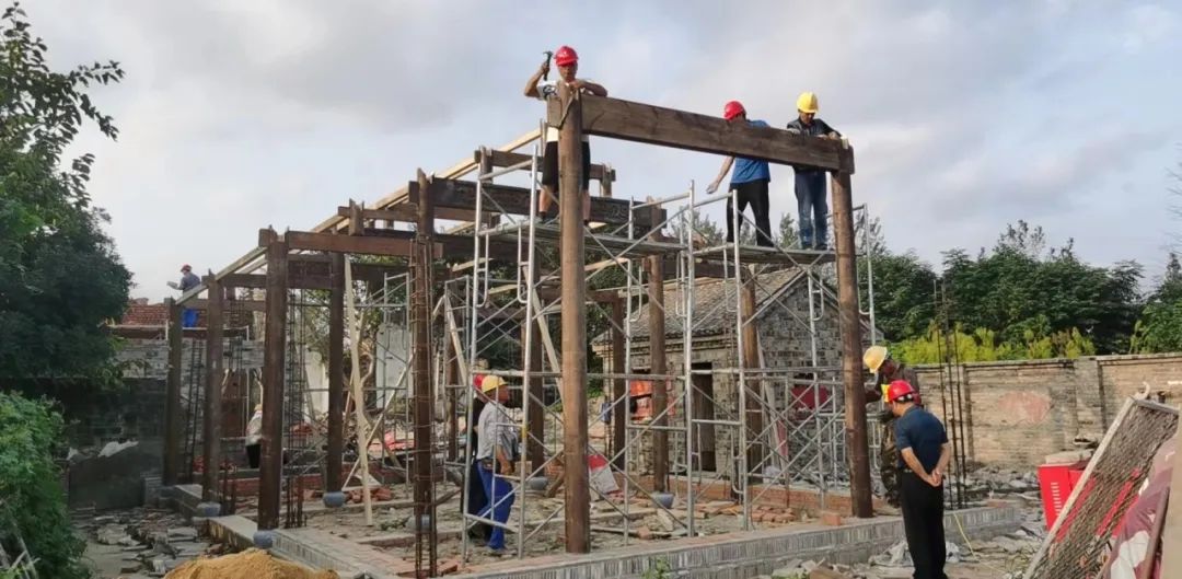 在滁州市南谯区乌衣老街项目现场,工人们挥汗如雨,正在组装木构架、屋面盖瓦,抢抓工期,让老百姓更早的享受优美的居住环境。