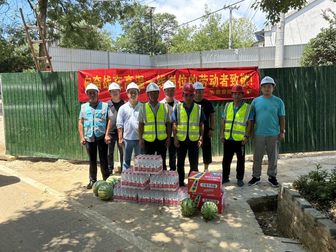 8月11日,夏日炎炎,在高温酷暑的天气下,滁州市琅琊山南门民宿项目工人始终坚守在一线工作岗位,为项目的成功落地竭尽全力。誉阳建设副总经理蔡圆圆代表集团公司为滁州市琅琊山南门民宿项目一线职工送上夏日关怀。
