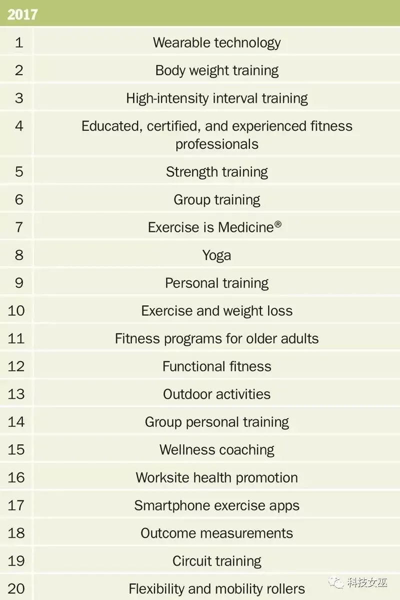 美国运动医学会(American College Of Sports Medicine,简称ACSM)刚刚发布了2017年健身行业趋势,这似乎是2016年的加强版(去年今日我编译了2016年趋势,你可以参考一下)。