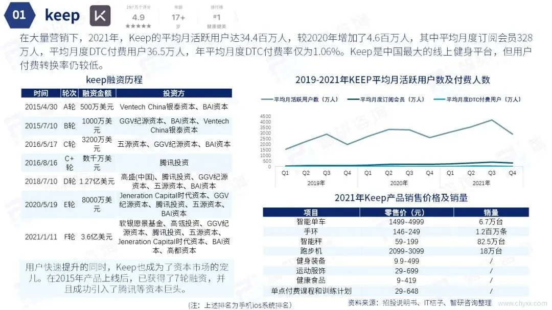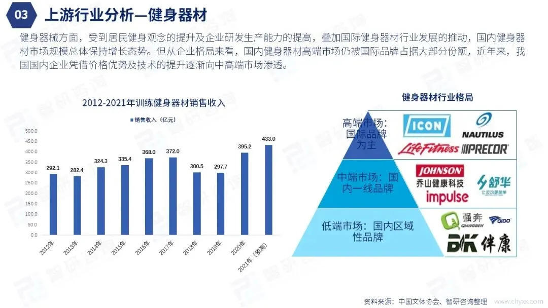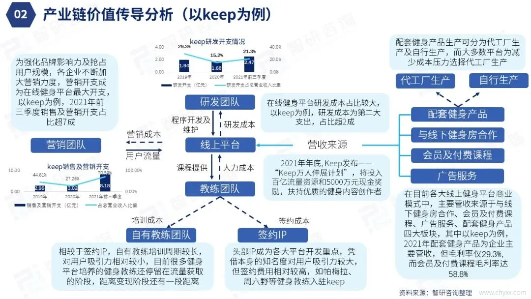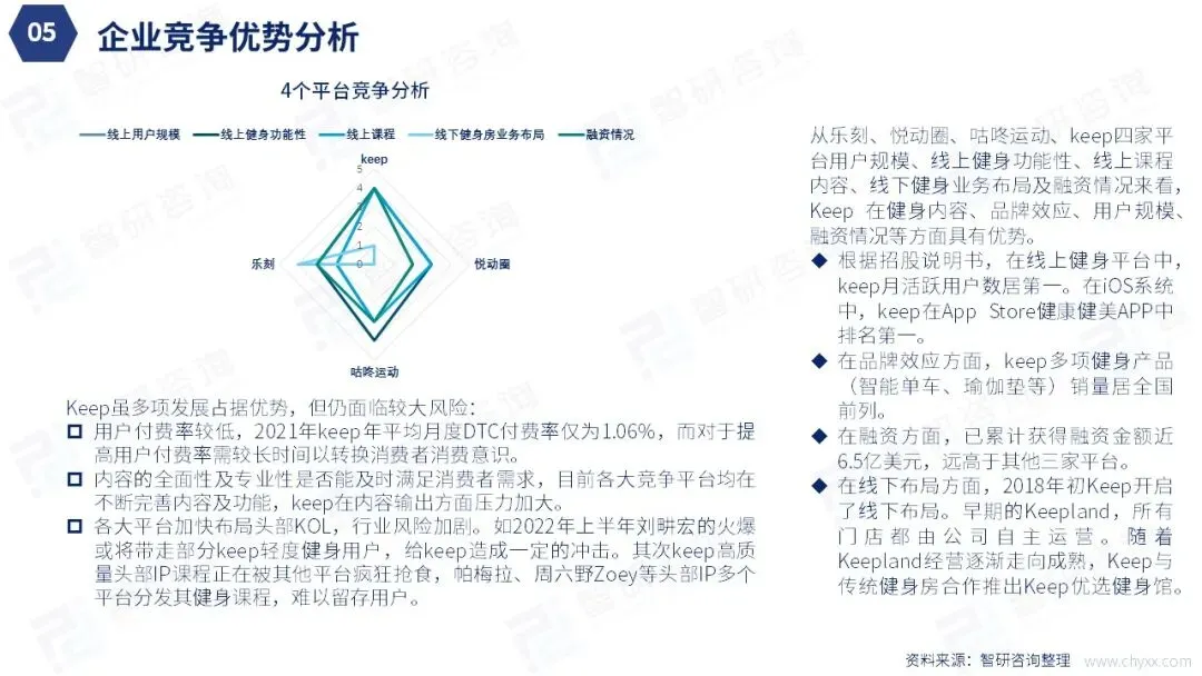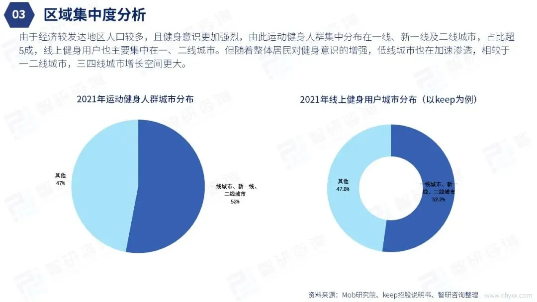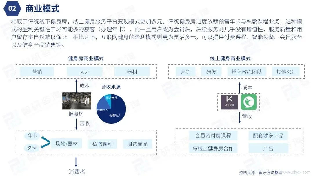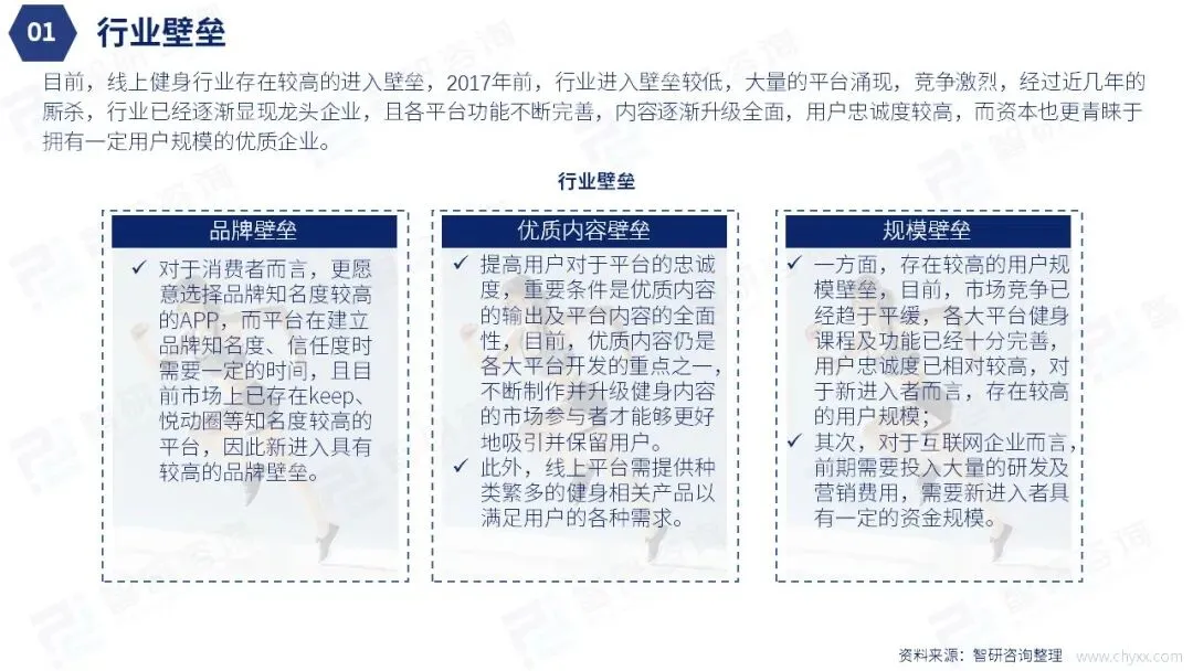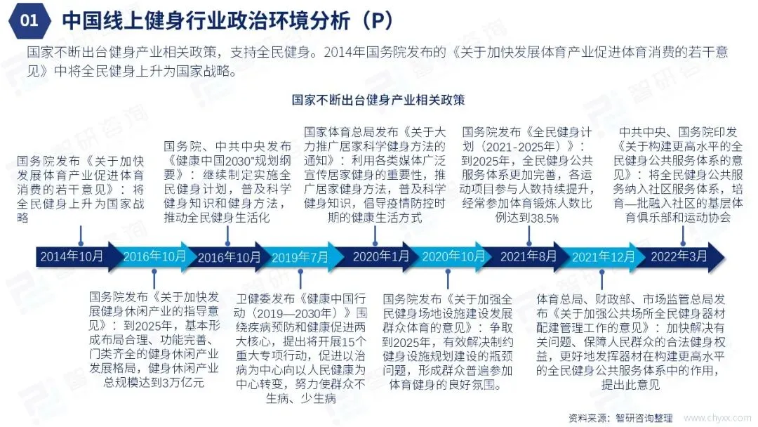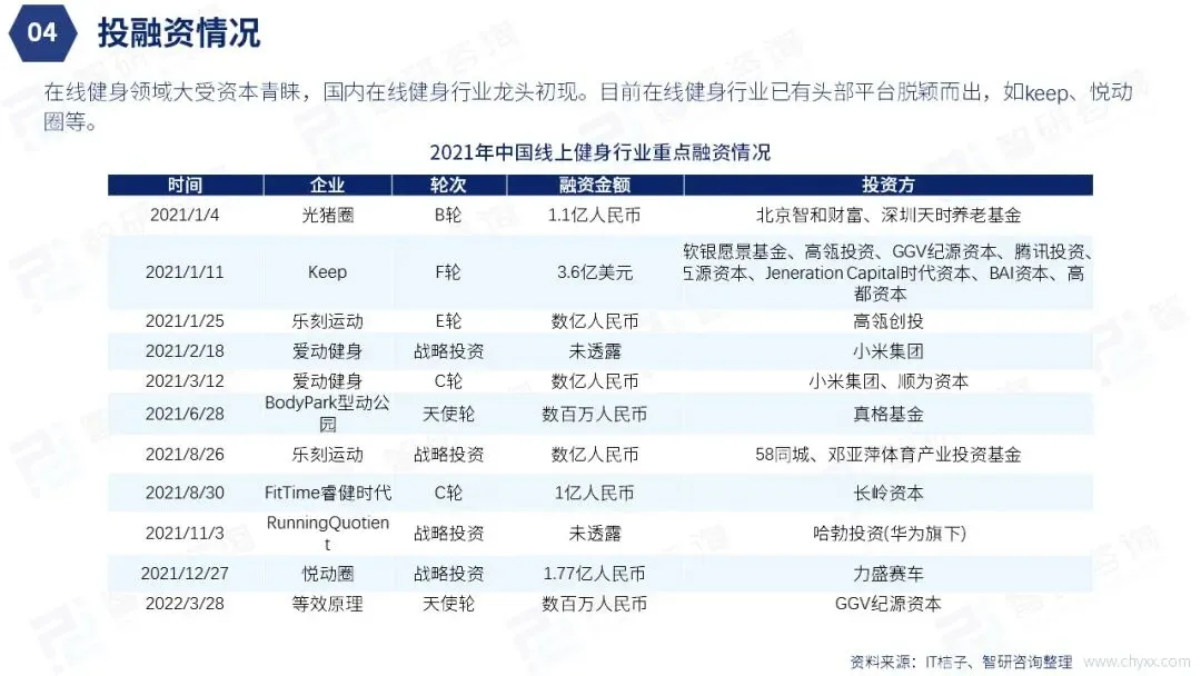 随着社会的发展和人们健康意识的提高,健身已成为一种流行的减压和维持身体健康的方式。在政策、经济、社会及技术因素的推动下,我国线上健身行业发展迅速,带动产业链上下游相关产品规模不断扩大。2020-2021年在疫情的催化下,线下健身房营业受阻,线上健身快速崛起,2021年中国线上健身月活跃用户数达1.4亿人,市场规模达3697亿元,其中线上健身食品是最大的细分市场,线上健身会员及课程是2021年增幅最大的细分领域。市场一片蓝海使得众多企业纷纷入局,尤其在2019年前,大量平台涌现,竞争十分激烈,2019年后,许多中小平台逐渐退出市场,行业龙头初显。随着消费者需求的多元化,未来我国线上健身行业将朝着集中化、一体化、专业化发展,规模也将持续扩大,2026年规模有望接近9000亿元。