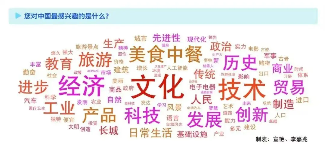 调查报告的一个关键发现是:发达国家对中国的最大兴趣点是“文化” 。