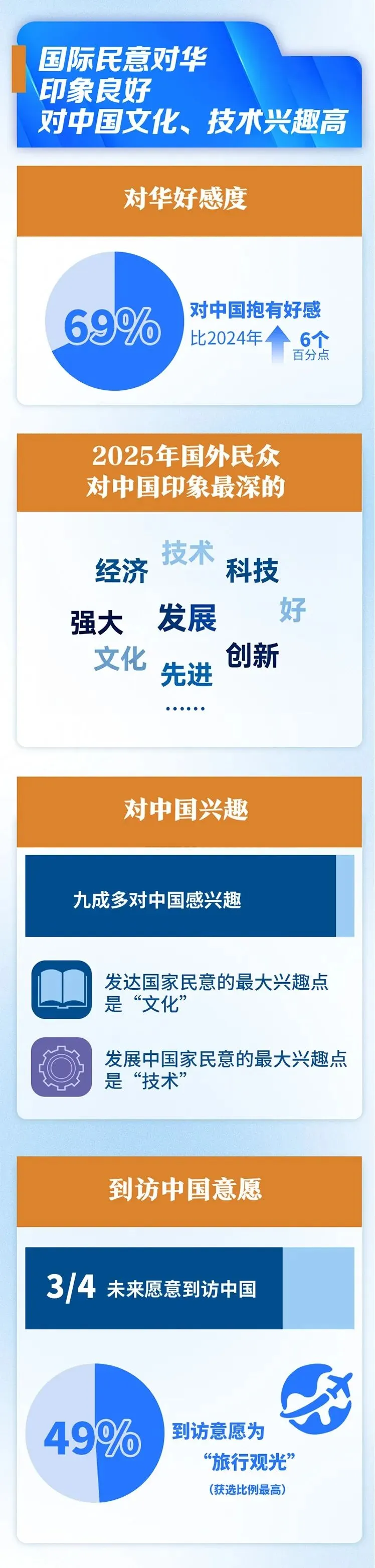 海外对中国的整体好感度较2024年增长6个百分点,近九成民众对中国抱有兴趣,而这份兴趣的核心,正清晰聚焦在“文化”与“科技”两大领域。