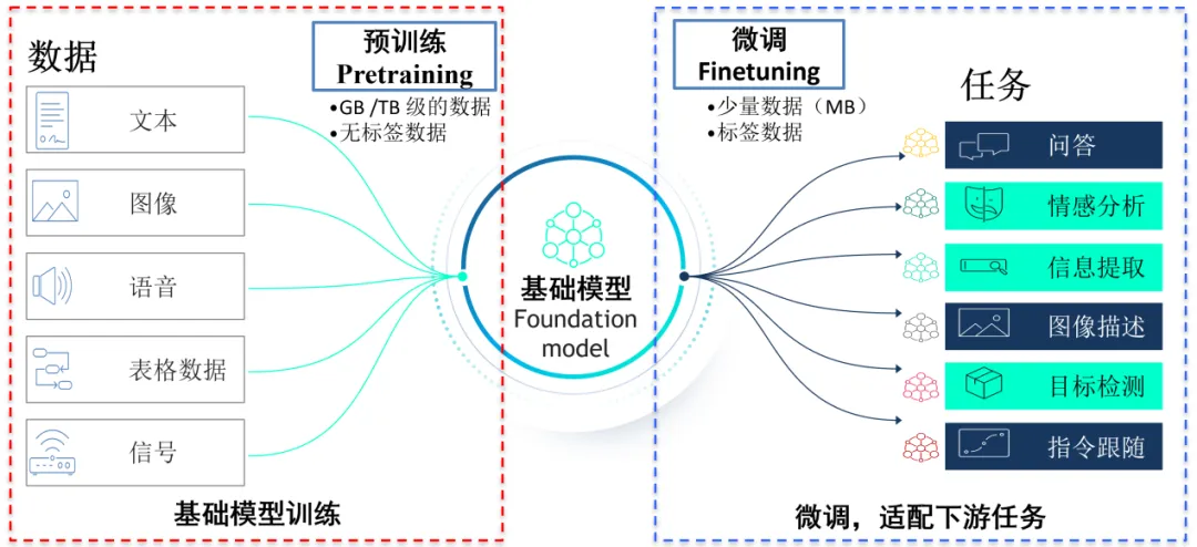 大模型最初指的是大语言模型(Large Language Model, LLM),后来发展了视觉大模型(Large Vision Model, LVM)、多模态大模型等。2022年7月李飞飞等100余名学者联名发表文章《On the Opportunities and Risks of Foundation Models》,正式提出基础模型(foundation model)的概念,2022年OpenAI推出历时八年研发而成的ChatGPT,将大模型推向新一轮热潮。