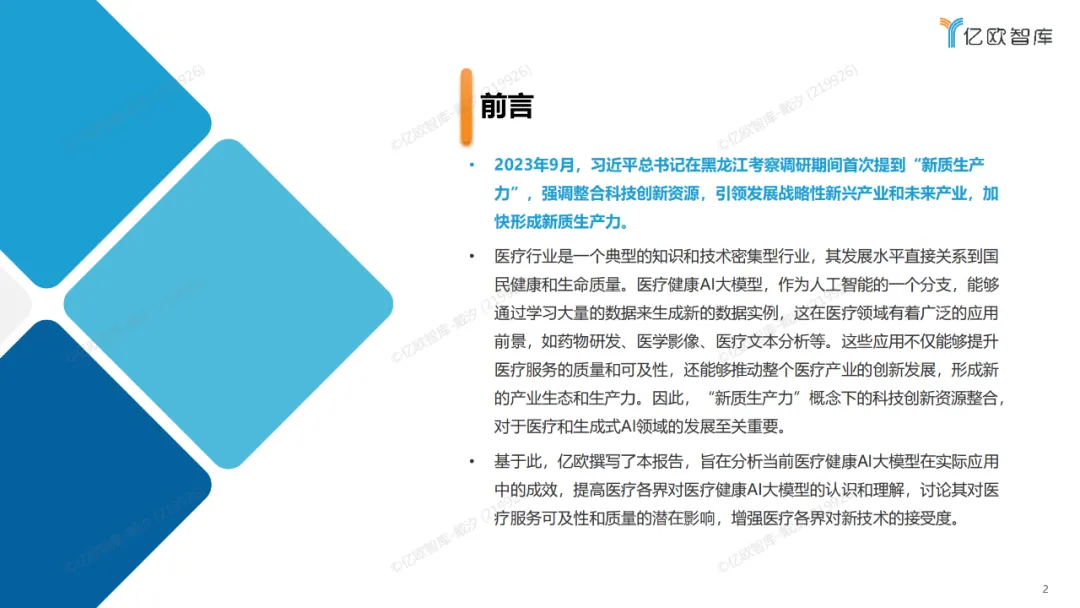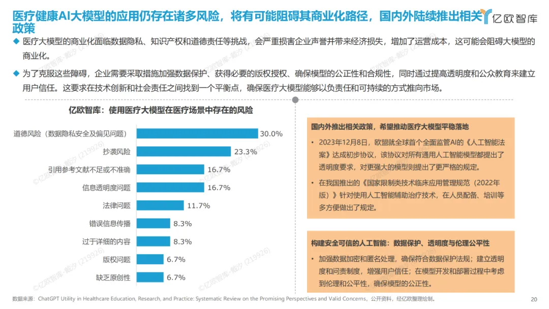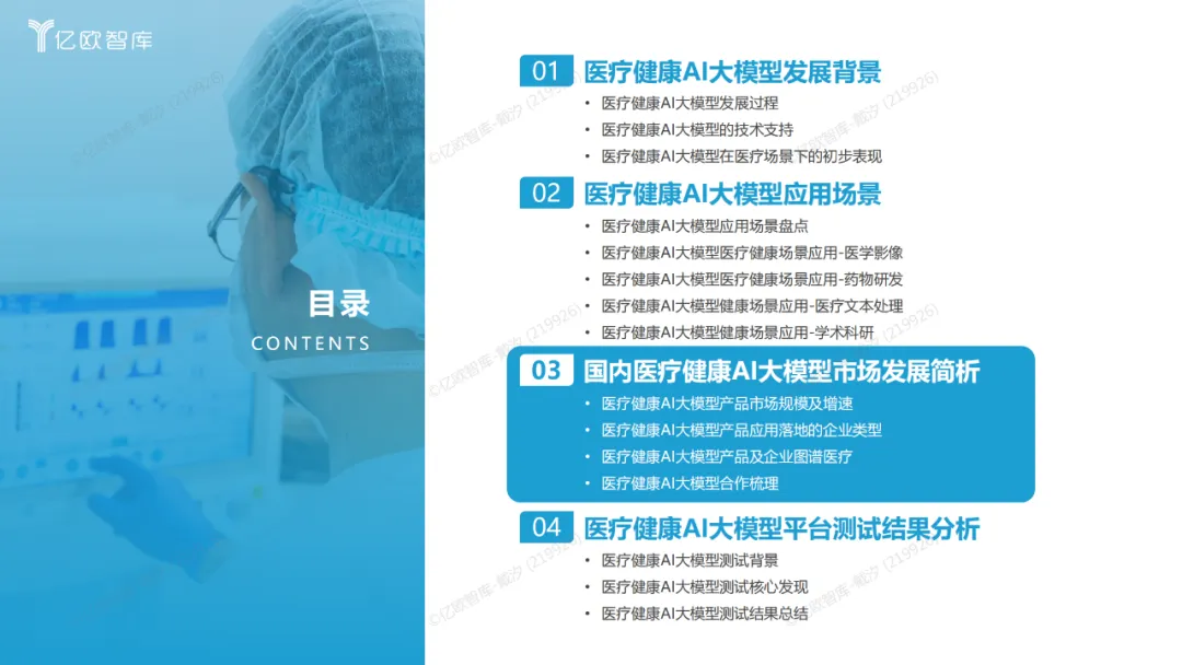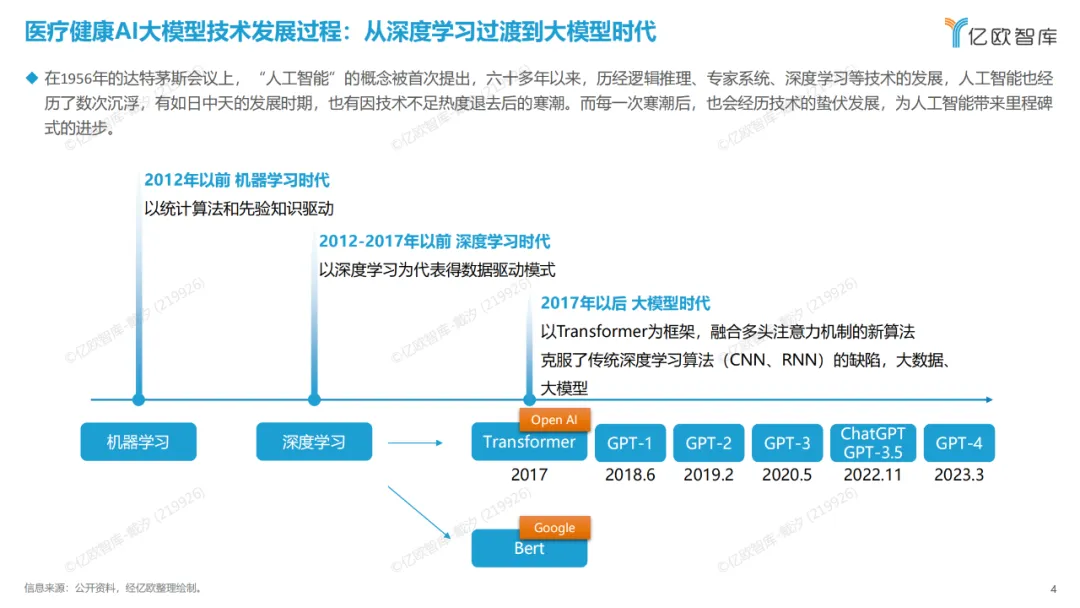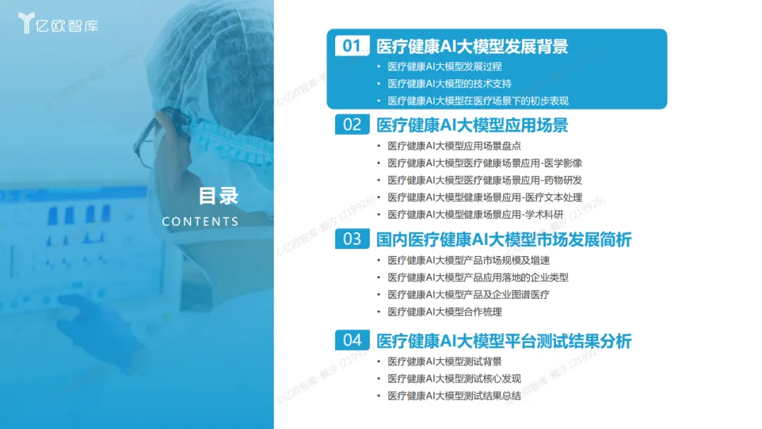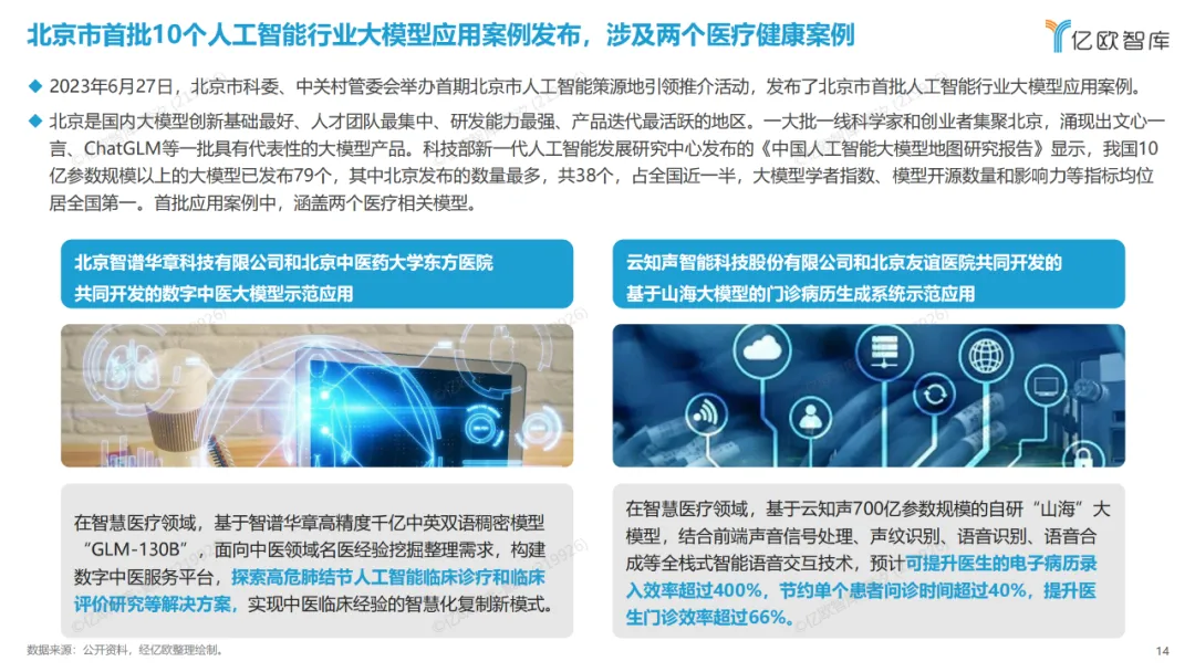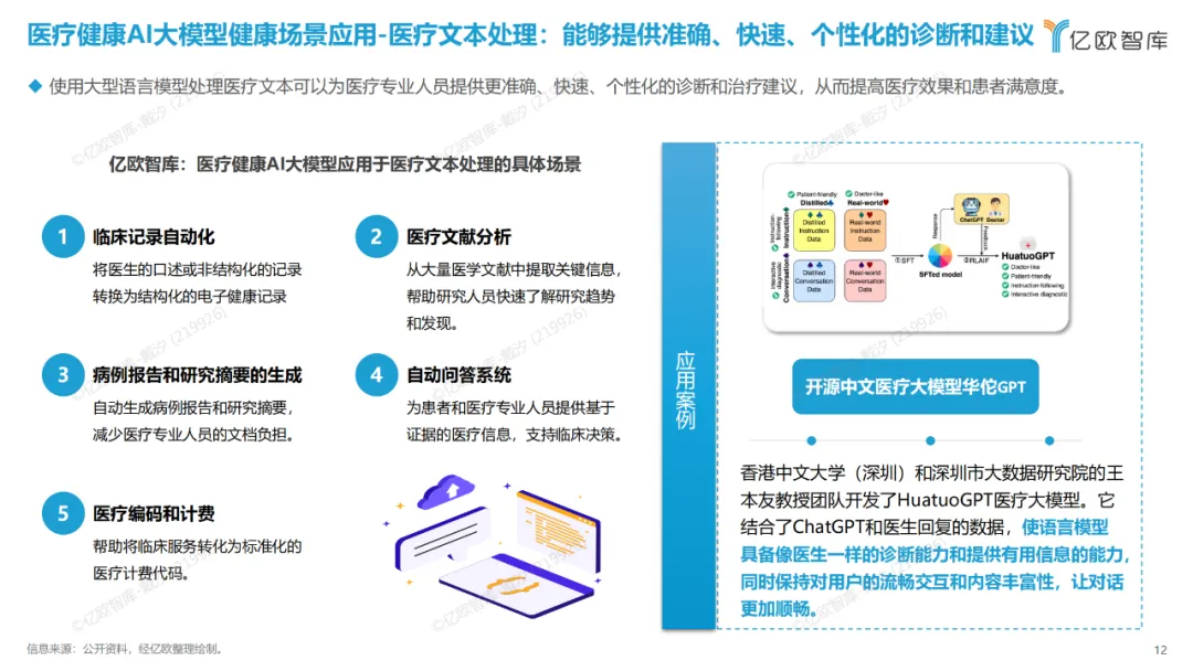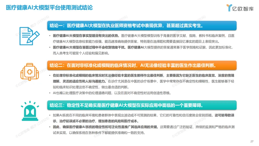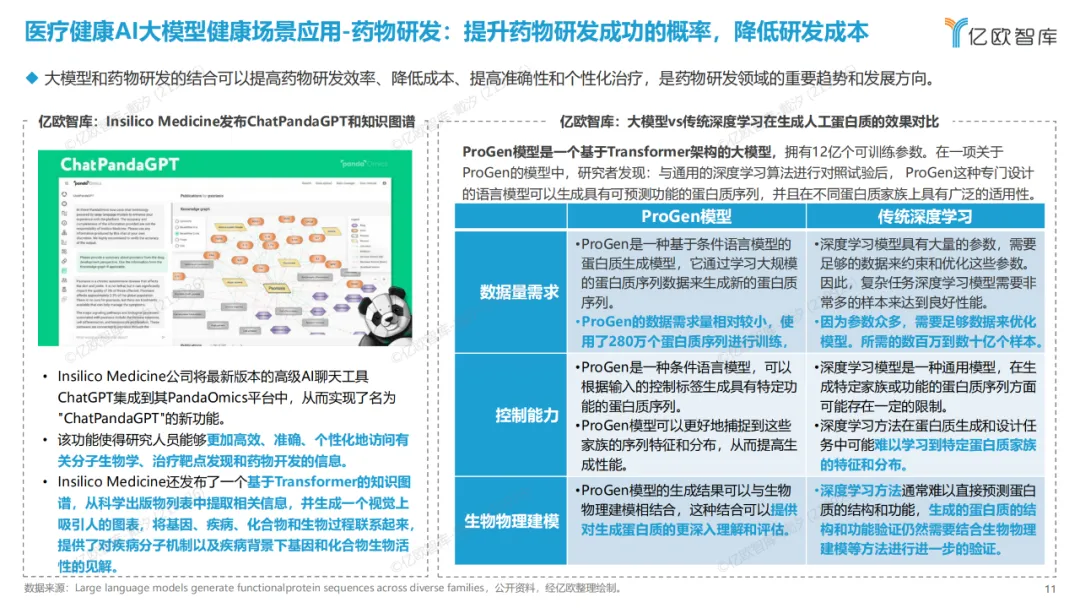 随着技术成熟度以及数据可用性增加,医疗健康AI大模型对医疗场景中(如药物发现、个性化医疗、医学影像、数据增强)的部分研发阻碍给出解决方案,加快医疗研发速度。同时,其生成式人工智能操作难度低,更能够被医疗领域的专业人员接受并使用。因此,报告预测,2023-2027年为医疗健康AI大模型集中爆发的阶段。虽然医疗健康AI大模型在一定程度上降低了某些方面的成本,但它们的使用和维护仍需要相当的资源投入,特别是对于需要高度定制化和专业化的应用场景。