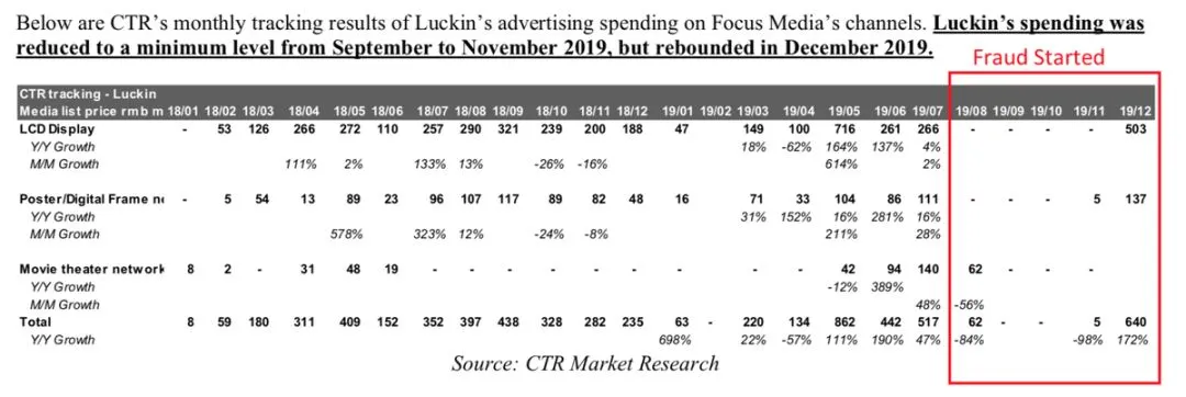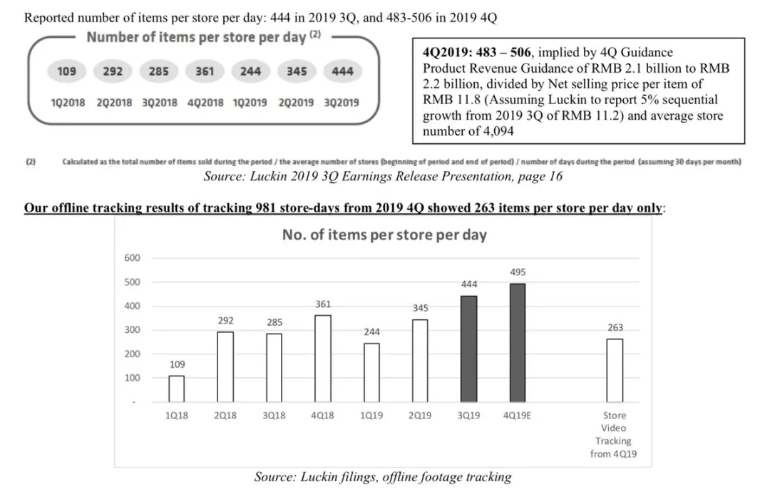 以做空中概股闻名的大空头“浑水研究-MuddyWaters Research”发布了一份对“瑞幸咖啡”股票长达89页的做空报告。报告作者派了92个全职和1400个兼职调查员,收集了25000多张小票 ,进行了10000个小时的门店录像,并且收集了大量内部微信聊天记录,认为瑞幸的平均每店货物数据在2019年第三季度虚增69%,在2019年第四季度虚增88%。同时还指出,瑞幸将2019年第三季度的广告支出夸大了150%以上,尤其是在分众传媒上的支出。同时,浑水在Twitter上表示:“我们收到了一份长达89页的不明身份的报告,声称瑞幸咖啡是个骗局:‘在2019年第三季度和2019年第四季度,每店每日商品数量分别夸大了至少69%和88%,有11,260小时的门店流量视频为证。’我们认为这项工作是可信的。”做空报告收集了来自1000位用户的25843张小票(关注CMKT咨询圈,在对话界面回复“瑞幸”,即可获取做空报告全文pdf)当瑞幸咖啡2019年5月上市的时候,它就基本上是个通过高额折扣和免费赠送向中国用户灌输喝咖啡文化的失败生意了。在其6.45亿美元的首次公开募股之后,该公司从2019年第三季度开始捏造财务和运营数据,已经演变成了一场骗局。该公司公布的一系列业绩显示,其业务出现了戏剧性的拐点,股价在两个多月的时间里上涨了160%以上。毫不奇怪,它在2020年1月成功地筹集了11亿美元(包括二次配售)。瑞幸确切地知道投资者在寻找什么,如何将自己定位成一个有精彩故事的成长型股票,以及操纵哪些关键指标来最大化投资者信心。这份报告由两部分组成:欺诈和基本崩溃的业务,我们分别展示了瑞幸是如何伪造数据的,以及为什么其商业模式存在固有的缺陷。铁证Smoking Gun Evidence #1Number of items per store per day inflated by 69% in 2019 3Q and 88% in 2019 4Q, supported by 11,260 hours of store traffic video每家商店每天的商品数量在2019年第三季度增长了69%,在2019年第四季度增长了88%,并有11260小时的商店流量视频支持。