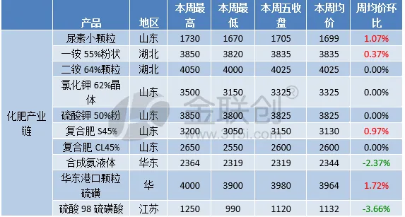 一、化肥产业链重点产品涨跌汇总