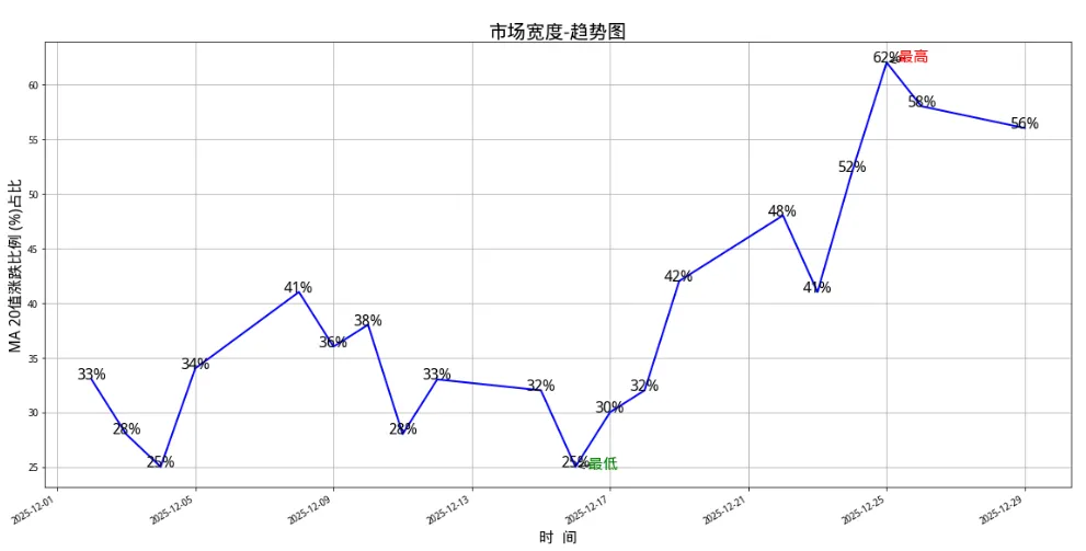计算方式:行业中所有股票昨日收盘价高于前20日均价的比例