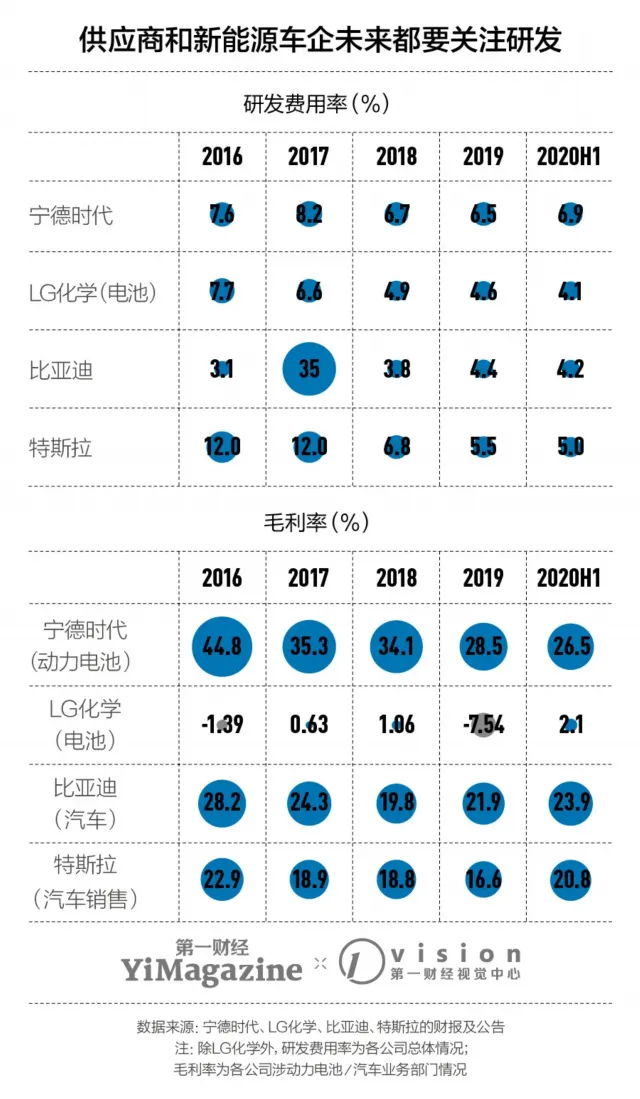 作为电动车产业链的中游环节,如果专注于动力电池研究,就意味着进入了一个高研发投入、长回报周期的“风险行业”。以行业龙头LG化学为例,集团资源和外部基金可以支撑起公司每年相当于20亿元至30亿元人民币的研发投入,却无法保证公司最基础的毛利率始终为正。