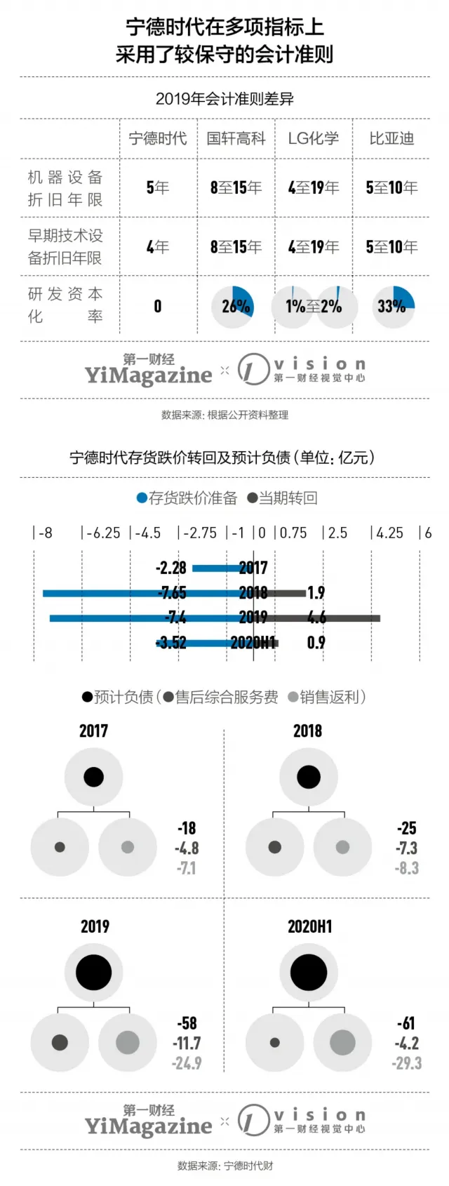 根据中信证券的核算,通过缩短折旧年限、研发成本100%费用化、提前计提存货跌价,以及计提大量的电池质保费用、兑现销售返利等会计手段,宁德时代在2019年将最多可达42亿元的净利润“处理”成了运营成本。