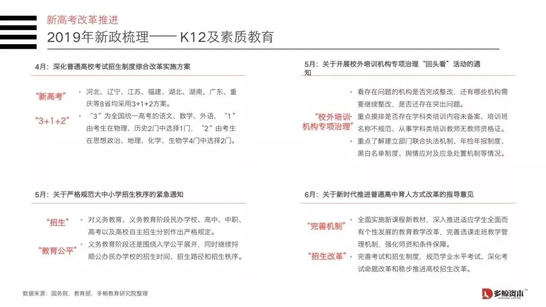 1)上半年政策延续对素质教育的支持力度。全国及地方性政策的推进主要有两个方向: