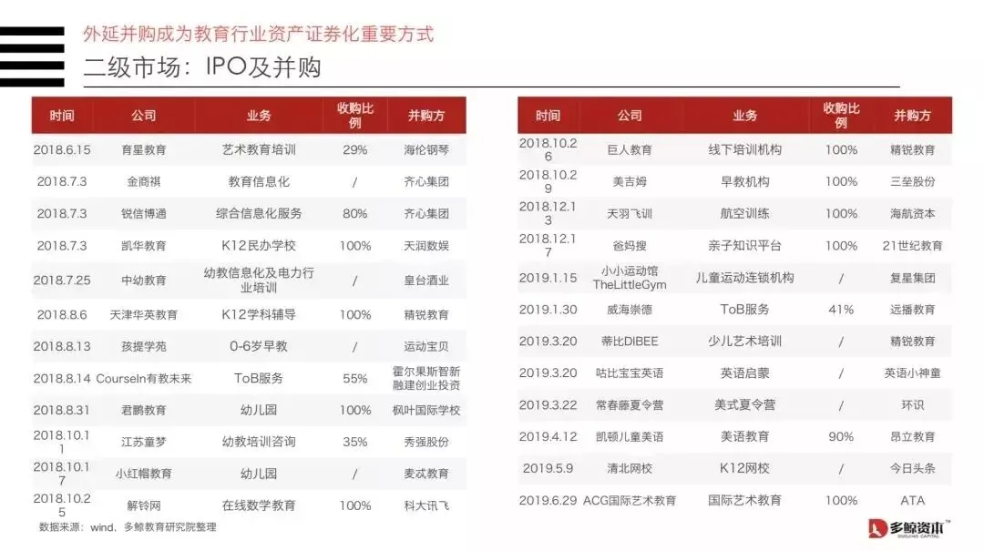 受宏观金融环境和教育监管政策的影响,2018年下半年至今,教育行业投融资市场寒意袭人,但各赛道优秀的创业公司和新的商业模式依然不断出现。教育产业化和资产证券化虽有低潮,但仍在向前,不经意间美股和港股市场又迎来一批教育上市公司,教育公司的IPO实现常态化。