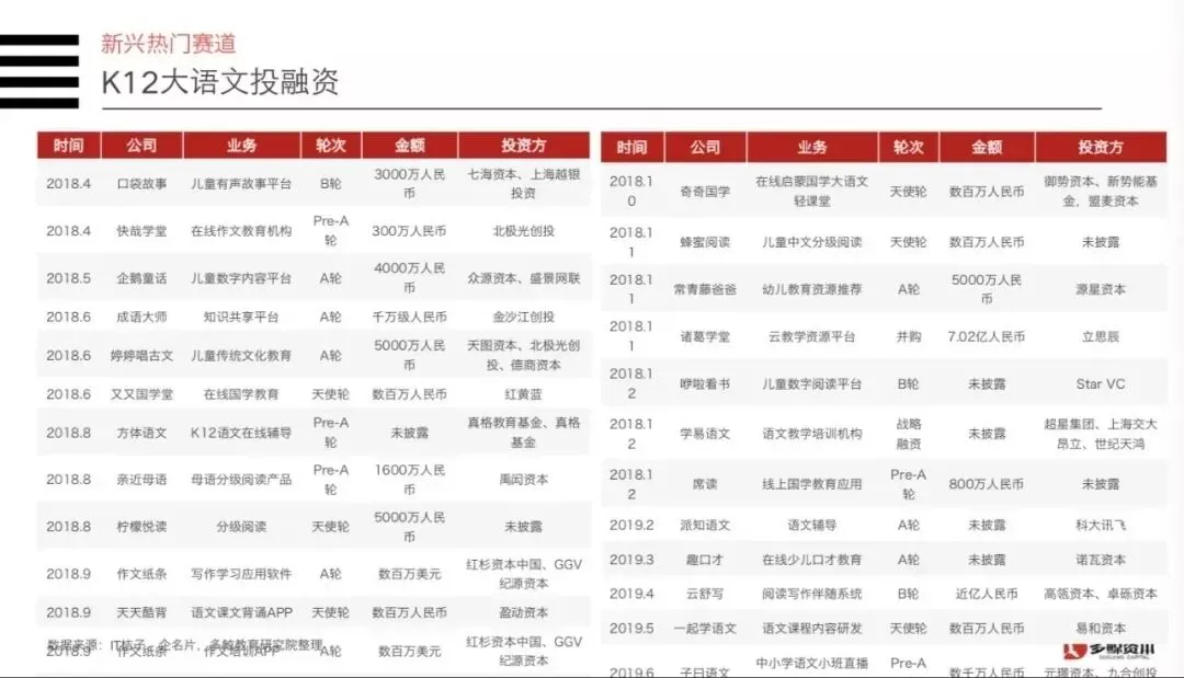资本早已蠢蠢欲动。据统计,从2018年至今,大语文赛道的融资案件已经高达25起,涉及各类应试和非应试语文学习工具和应试辅导。
