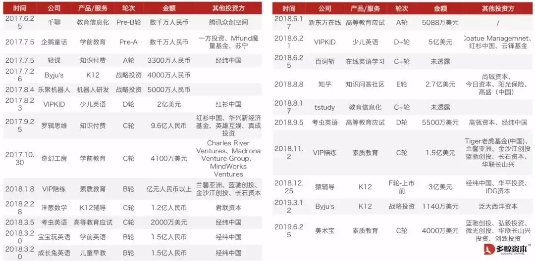 关注【鲸Media】微信公众号,在后台回复“2019上半年投融资”,即可得《2019上半年教育行业投融资报告》完整版PDF。