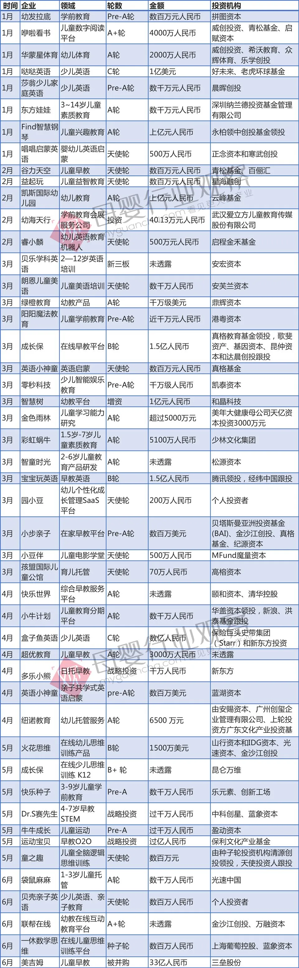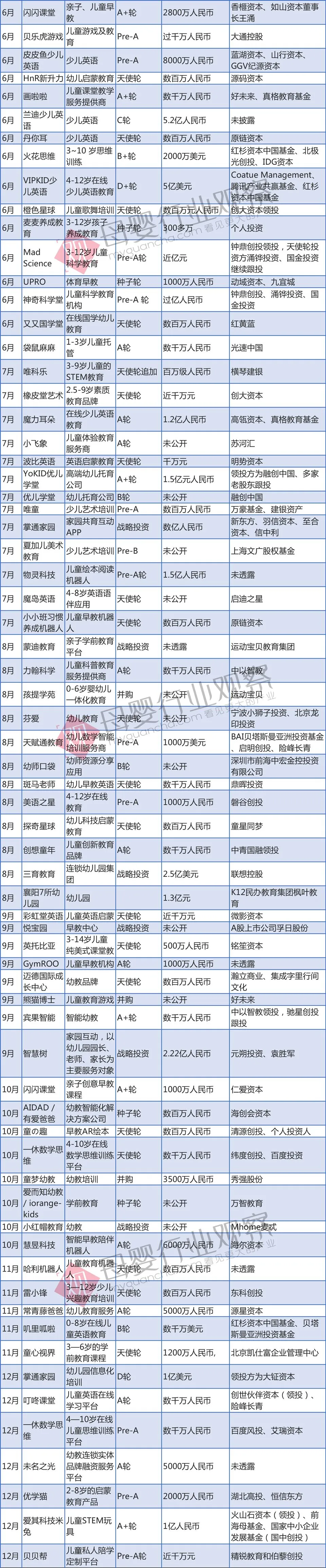 2018年早幼教领域投融资数据: