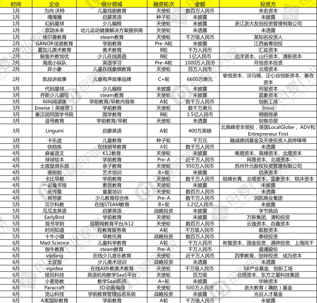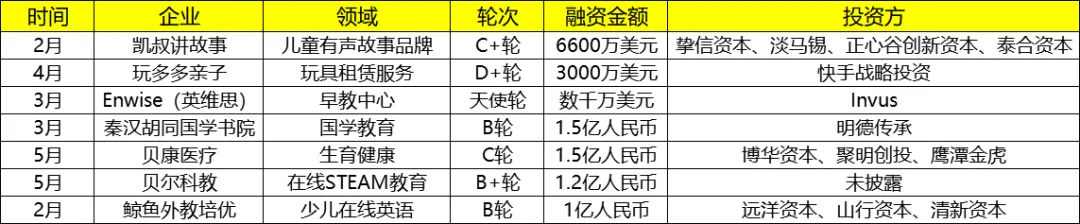 (2020上半年早幼教投融资数据)