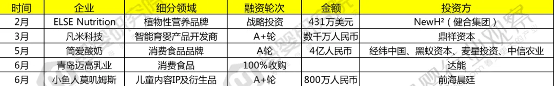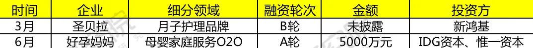 (2020上半年婴童产品、护理服务投融资数据)