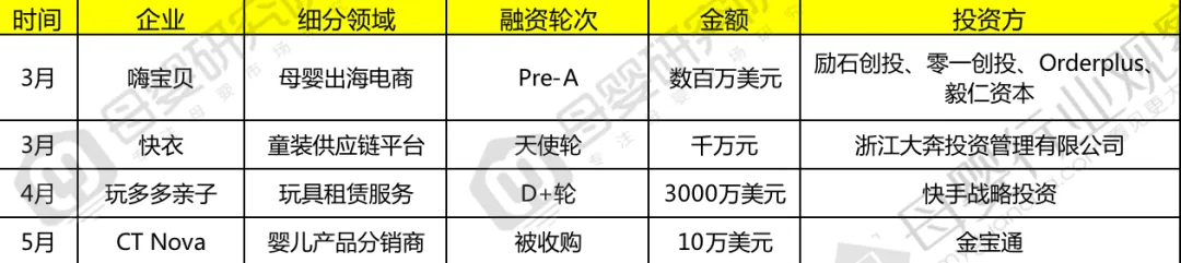 (2020上半年母婴零售投融资数据)