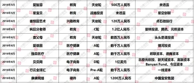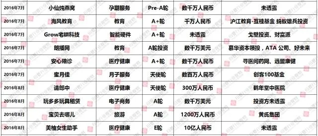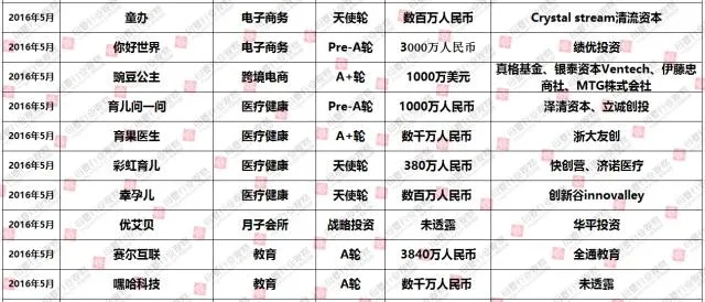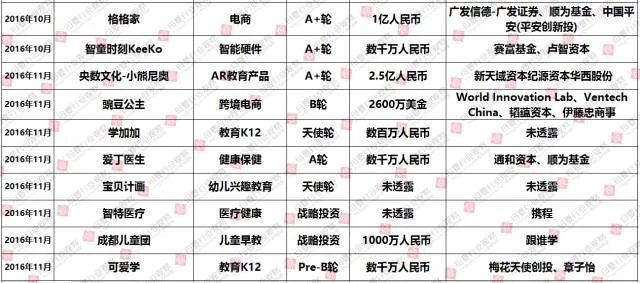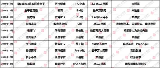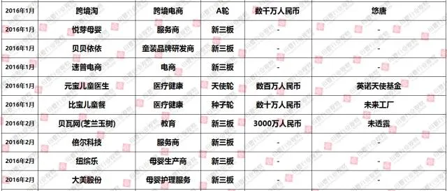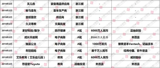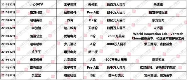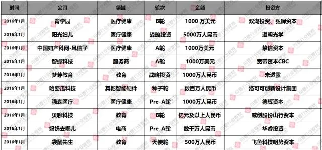 (2016年1-12月母婴行业投融资数据报告,点击查看大图)