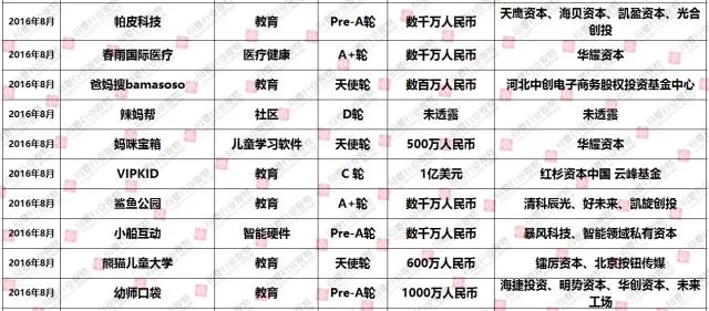 母婴行业观察根据市场公开信息整理最全2016年母婴行业投融资报告,为您解读大热的母婴行业的发展变化以及未来趋势。我们主要统计整理了2016年以来,全年母婴行业相关投融资获得投资的母婴行业项目共170起,其中教育投融资68起、母婴电商31起、医疗健康27起、孕育母婴护理服务7起、亲子产品服务8起、母婴智能硬件12起、母婴社区4起、母婴服务商13起,平均每个月近14起。从这个数字也可以看出,母婴行业依然火热,创业者继续涌入,投资人依旧看好。