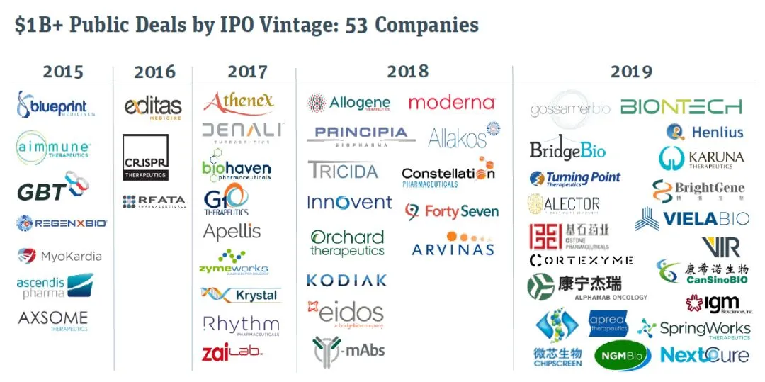 2019年生物医药公司在IPO市场表现强劲,表现最好的领域仍然是肿瘤学和平台公司,罕见病公司和开发神经疾病疗法的公司表现也十分出色。